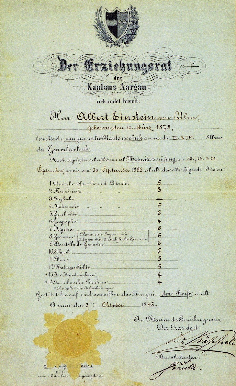 Einstein bol mnohokrát dávaný za príklad človeka, ktorý napriek nespornej genialite nemal príliš dobrý prospech. Traduje sa, že z matematiky dokonca prepadal.Lenže pravda je iná. Génius mal známky priemerné, v matematike však exceloval. Lenže na jeho škole sa známkovalo naopak. Najlepšia známka bola šestka a najhoršia jednotka. Ak chceš vidieť šestku z matematiky, klikni na Einsteina.